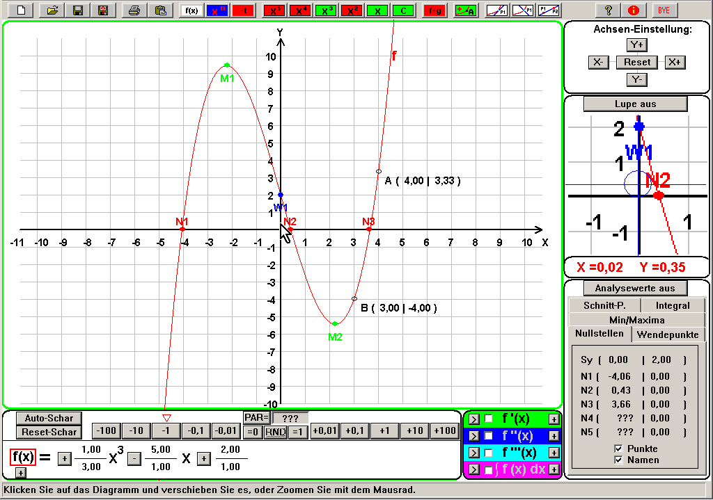 Polynom mit Nullstellen, Extremwerten und Wendepunkt: