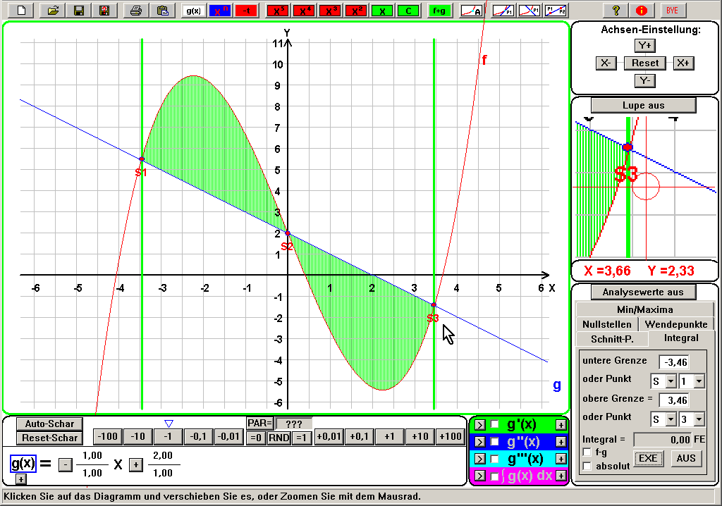 Flächenberechnung zwischen den Schnittpunkten von 2 Funktionen: