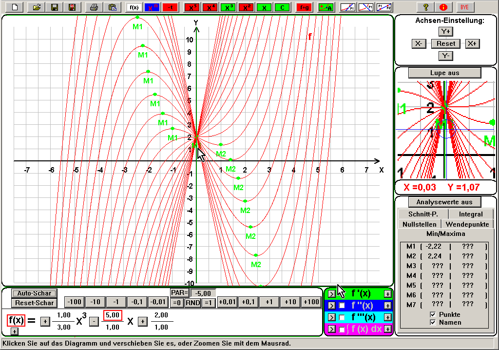 Funktionsschar in Abhängigkeit von x-Parameter: