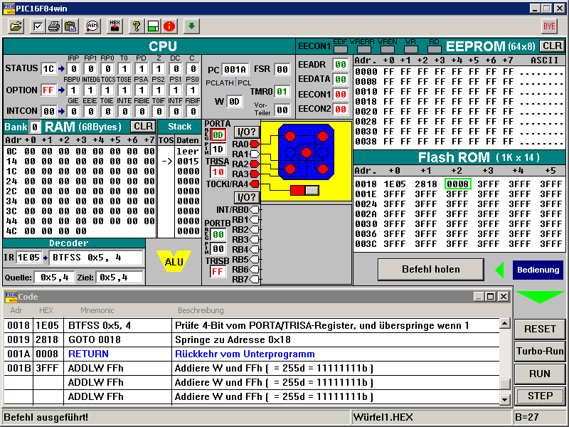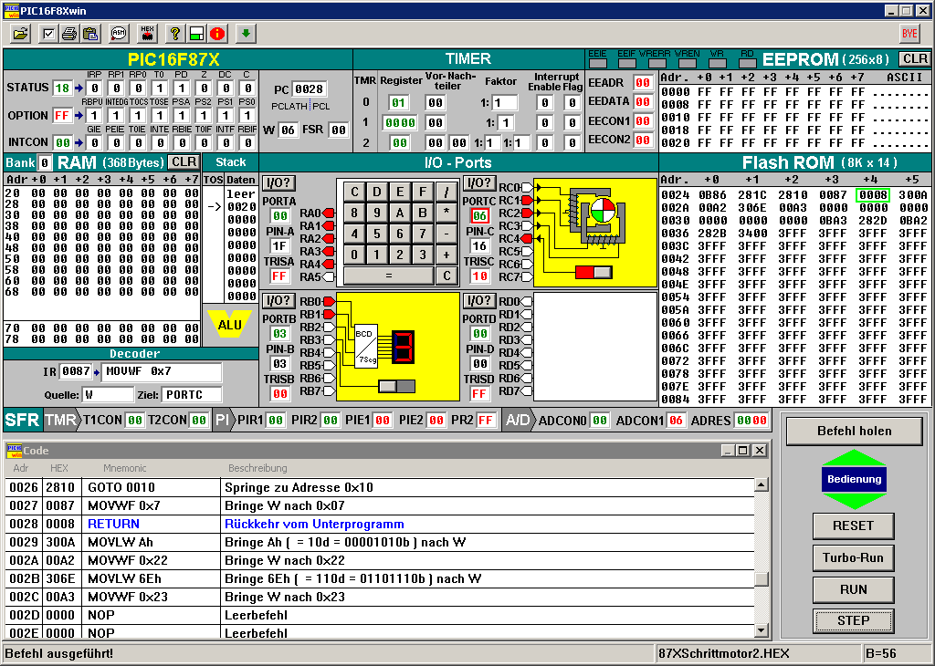 Schrittmotor-Steuerung mit PIC16F8Xwin