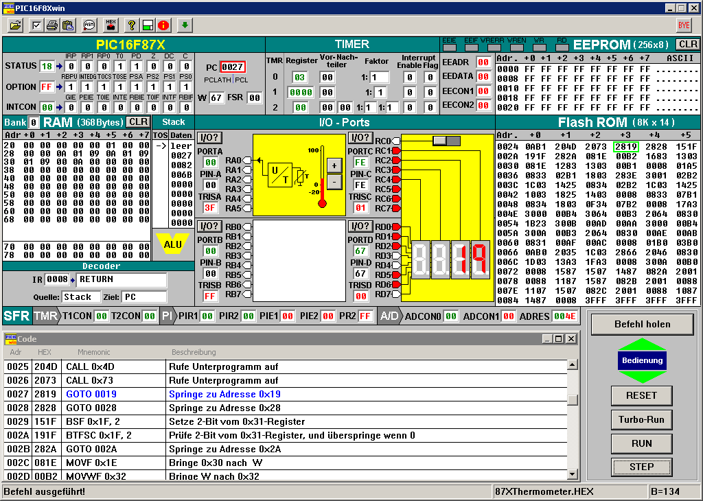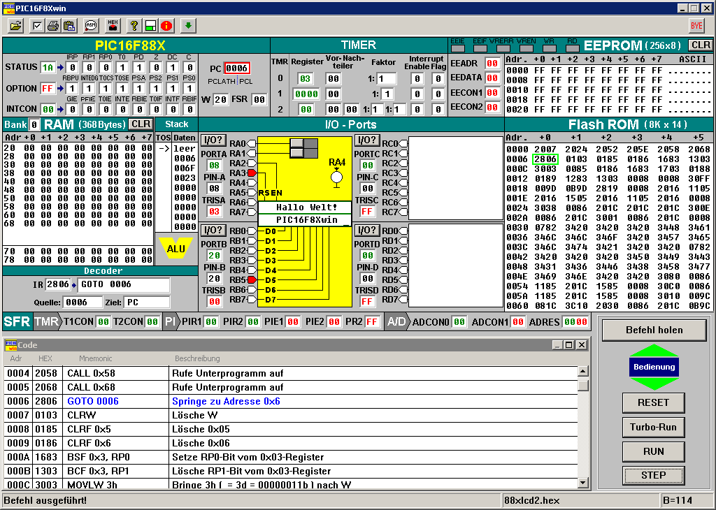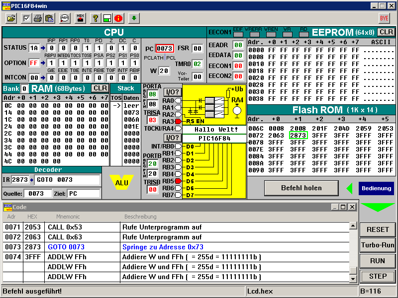 LCD-Anzeige-Programm mit PIC16F8Xwin