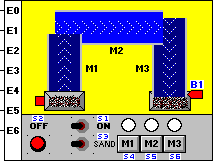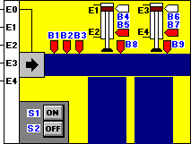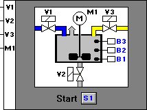 | Sequentielle Bauteile: | Flipflop: SR und RS, S und R S7-Timer: S_IMPULS, S_VIMP, S_EVERZ, S_SEVERZ, S_AVERZ 61131-Timer: TP, TON, TOF ( Schaltzeiten zwischen 0,1s und 1M_39S_900MS programmierbar ) Zähler: ZAEHLER, Z_VORW , Z_RUECK ( Zählwert zwischen 1 und 999 programmierbar ) Taktgenerator